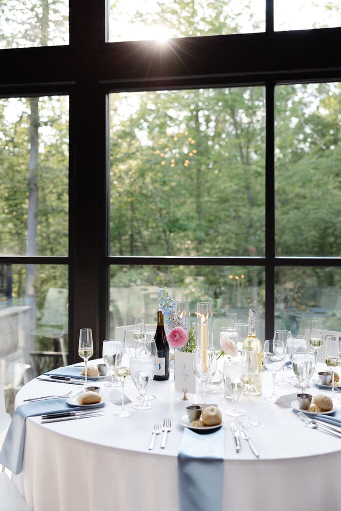 Receptions are typically held in the Oak Room, a bright and airy indoor space designed for elegant celebrations. Floor-to-ceiling windows allow natural light to pour in while offering stunning views of the winery grounds. The space is perfect for banquet-style dining and dancing, accommodating approximately 200–250 guests comfortably.